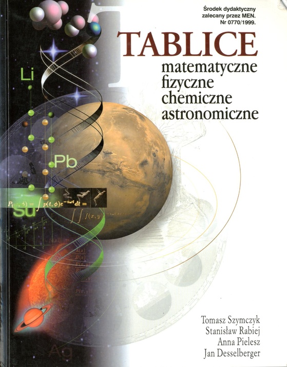 Tablice matematyczne, fizyczne, chemiczne, astronomiczne / Tomasz Szymczyk [et al.]. - Wyd. 8. - Bielsko-Biała : "Park", 2003. - 412 s., [1] k. tabl. : rys., wykr. ; 21 cm.