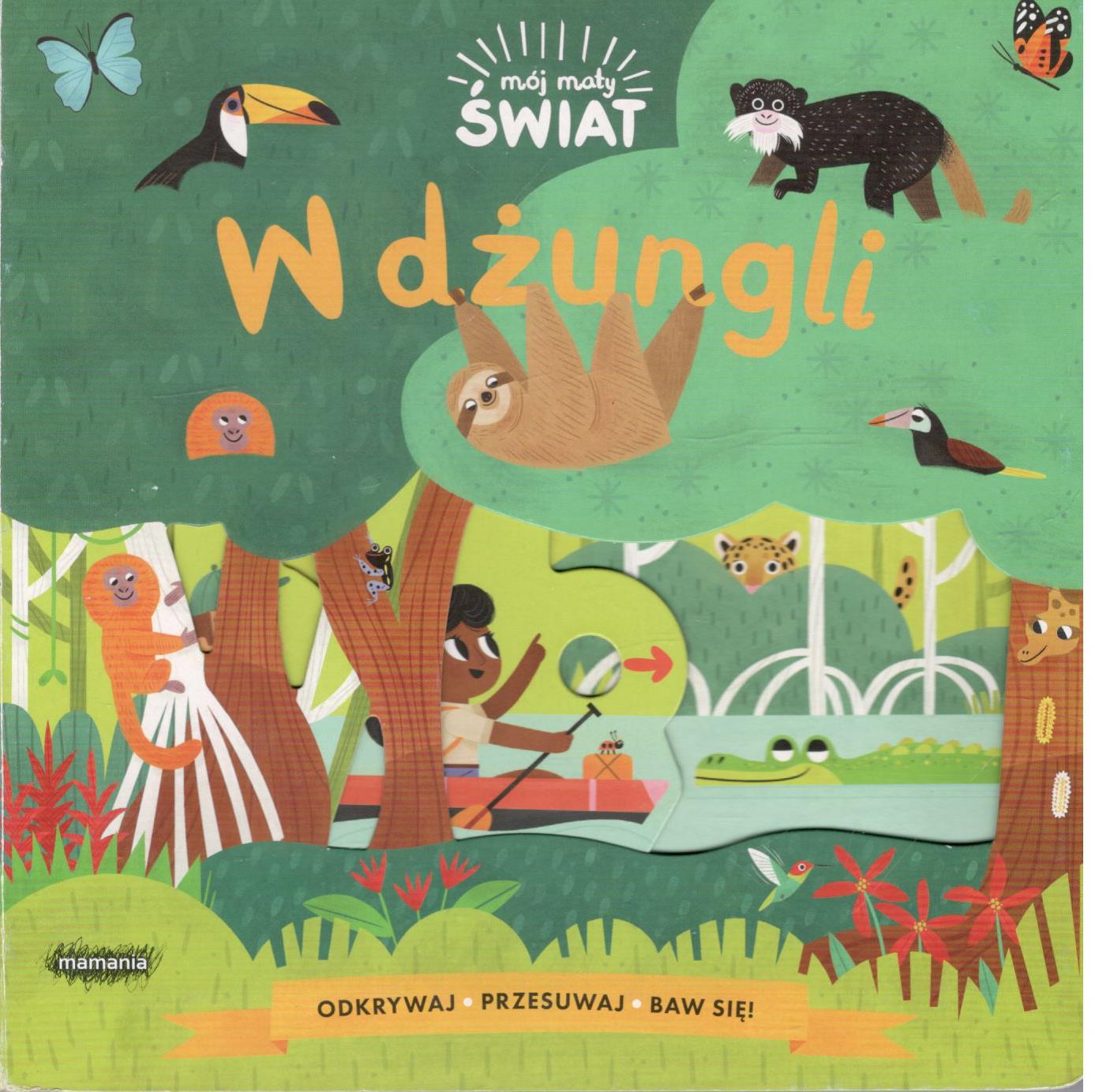 W dżungli / [ilustracje: Allison Black]. - Warszawa : Mamania, copyright 2020. - [10] stron : ilustracje ; 18x18 cm.