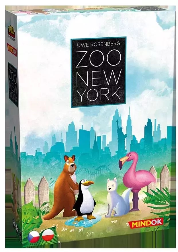 Zoo New York / autor: Uwe Rosenberg ; grafika: Feliks Wermke ; [tłumaczenie: Sławomir Jagiełło]. - Kraków : Bard Centrum Gier, [2021]. - 1 pudełko (8 dwustronnych plansz Zoo, 1 plansza główna, 45 płytek wybiegów, 32 płytki atrakcji, 10 żetonów zwierząt, 1 żeton "?", 5 żetonów ruchu, 126 drewnianych zwierząt, 1 drewniany słoń, polska instrukcja) : ilustracje ; 32x23x6 cm.